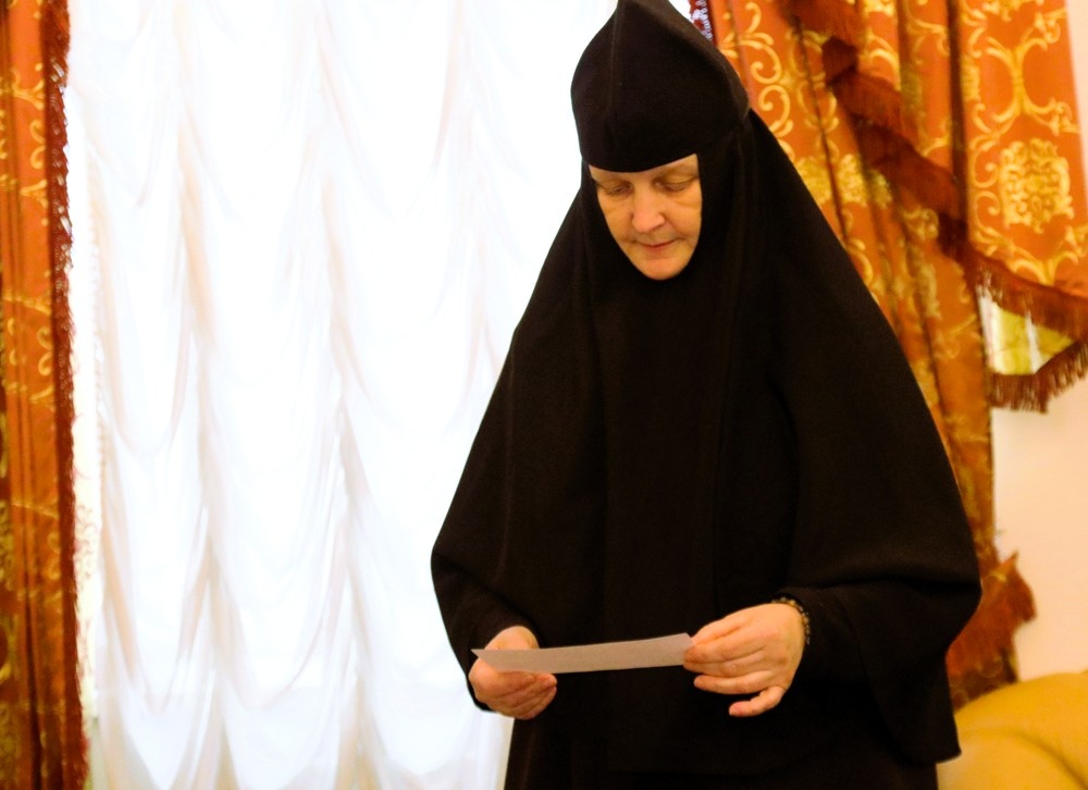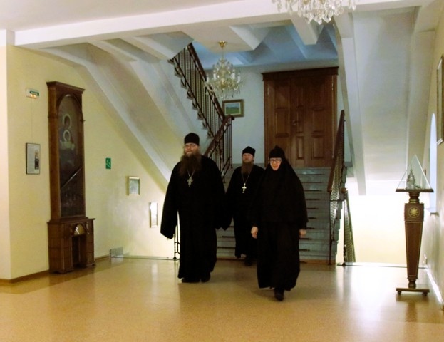 7 ноября члены выездной группы проверили библиотечный фонд и материально-техническое обеспечение базовой учебной площадки - Женского монастыря святых первоверховных апостолов Петра и Павла с. Петропавловка Хабаровского края. Здесь комиссия встретилась с настоятельницей обители - игуменией Антонией (Кочубей), которая является руководителем Курсов для монашествующих, обсудили дальнейшие перспективы в обучении вверенных ей насельниц и вручили подарочное издание учебно-методических комплексов дисциплин базовой части курсов, изданных в виде приложения к журналу Синодального отдела по монастырям и монашеству «Монастырский вестник».
